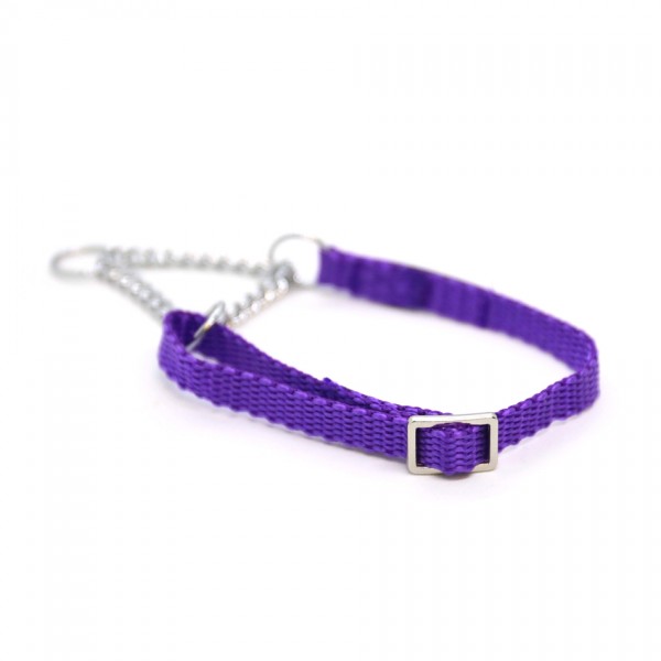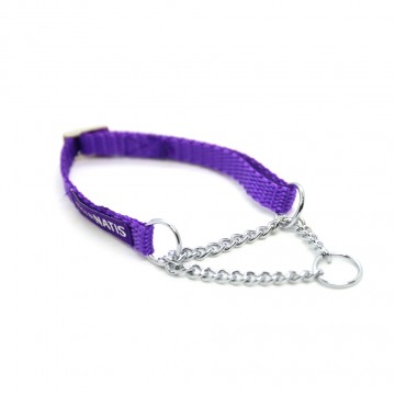 These simple collars do not have clips, but are simply placed over the dog's head. The metal part ensures that the collar can be stretched and tightened but only up to a certain length. The part of the collar that consists of the strap is adjustable and thus allows the collar to grow with the dog or adapts to different neck circumferences.