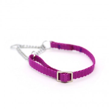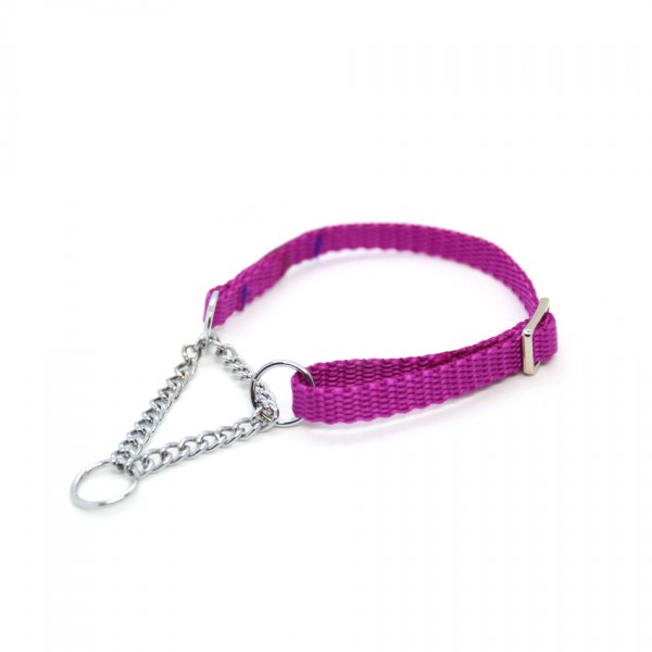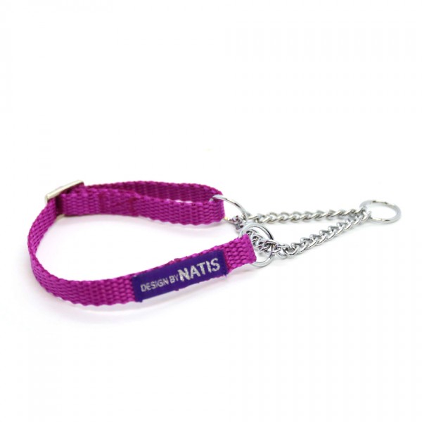 These simple collars do not have clips, but are simply placed over the dog's head. The metal part ensures that the collar can be stretched and tightened but only up to a certain length. The part of the collar that consists of the strap is adjustable and thus allows the collar to grow with the dog or adapts to different neck circumferences.