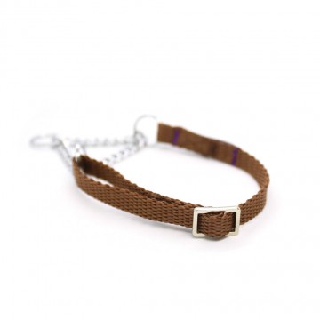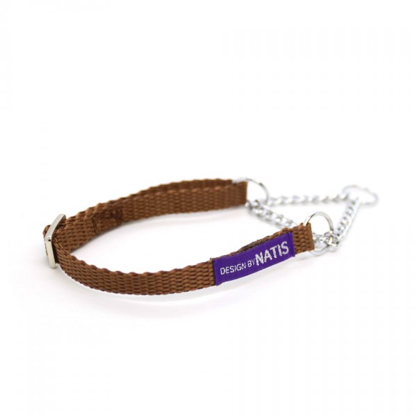 These simple collars do not have clips, but are simply placed over the dog's head. The metal part ensures that the collar can be stretched and tightened but only up to a certain length. The part of the collar that consists of the strap is adjustable and thus allows the collar to grow with the dog or adapts to different neck circumferences.