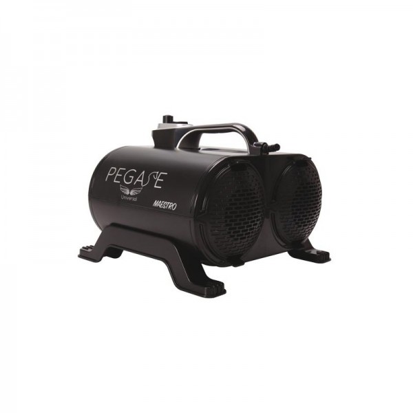 Portable dryer for professionals. It is equipped with 2 motors in simultaneous operation. It is also equipped with a variable speed and air flow rate control as well as a 3-position on/off switch to control the temperature of the unit.