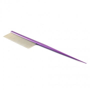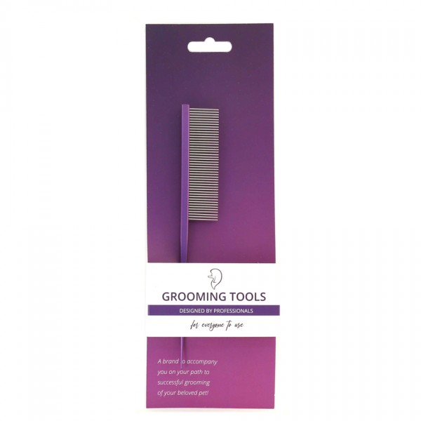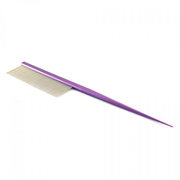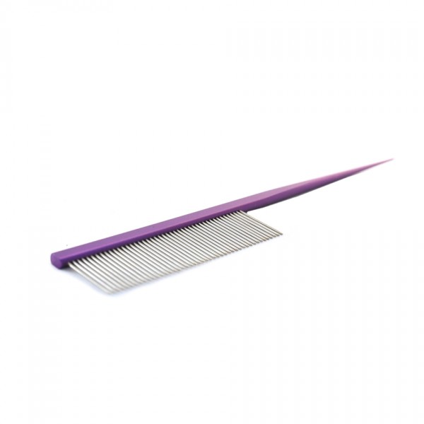 A medium-length metal comb with double-length teeth that alternate along the entire length (short, long, short, long...). This type of tooth arrangement is ideal for tufting the coat at the show.