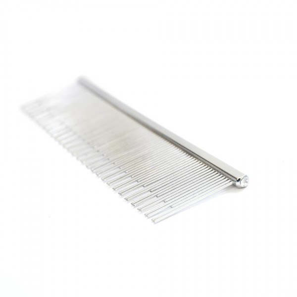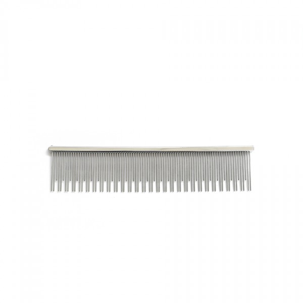 The medium metal comb with two different densities of teeth is a classic helper when combing the hair and looking for foreign objects in it. Due to its elegant shape, it is extremely light and at the same time durable.
