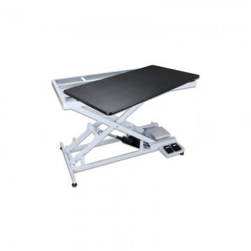 Electric grooming table with rectangular table top (60 x 110 cm). Height variation is 59 cm; low position 39 cm, high position 98 cm.