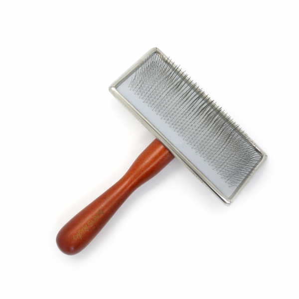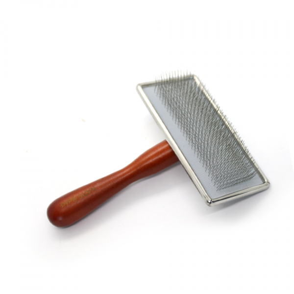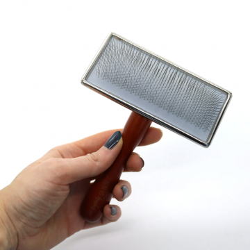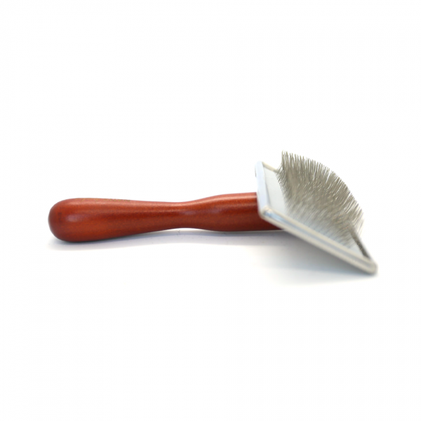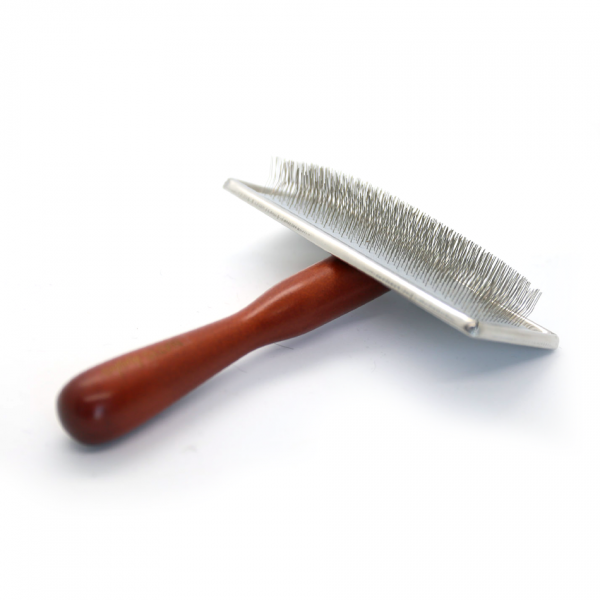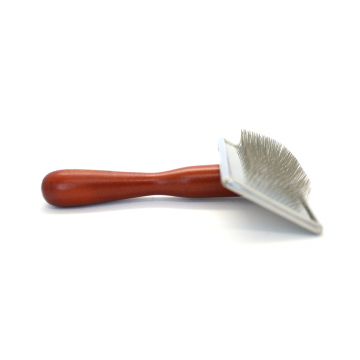 This medium-sized slicker brush with long, sturdy needles is perfect for regular brushing of thick-coated dogs. The metal head is thin and flat, so you can comb even hard-to-reach areas.