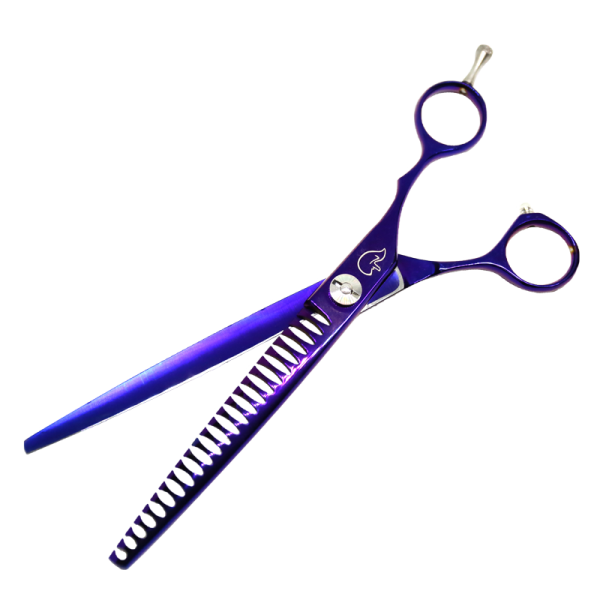 Scissors are entirely made of Japanese stainless steel, Hitachi SUS 440C. They are coated with purple titanium dressing which not only gives them fantastic looks but also keep them safe from outer damages. Screw on the blades is adjustable without use of additional tools which allows you to adjust friction between the blades as you go – adjust it easily to fit the coat type you are working with.