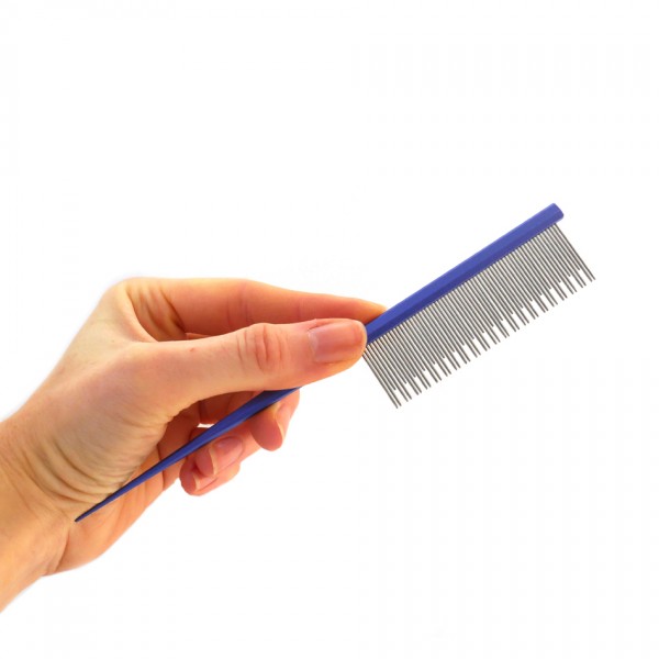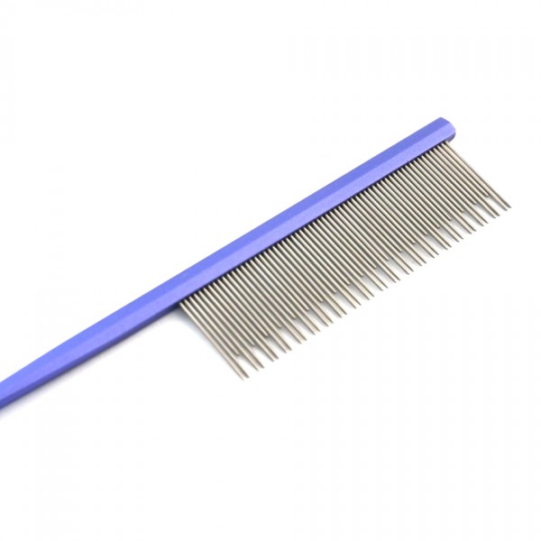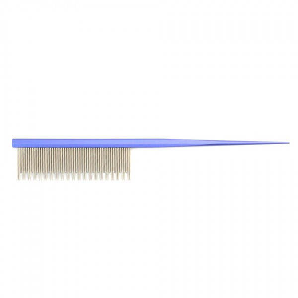 Veliki metalni češalj s dvostrukom gustoćom zubaca, gušće raspoređenih u odnosu na standardne češljeve, predstavlja izvrstan alat za češljanje kose škarama. Zahvaljujući svom elegantnom obliku, izuzetno je lagan, ali i vrlo izdržljiv.