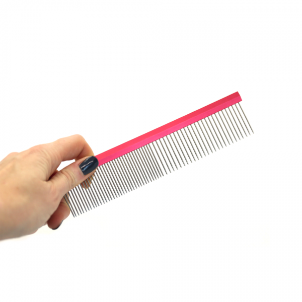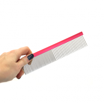 Dugi metalni češalj s ravnomjerno i široko raspoređenim zupcima. Idealan je za podizanje i oblikovanje kose tijekom šišanja. Unatoč svojoj dužini, izuzetno je lagan, ali istovremeno kompaktan i izdržljiv.
