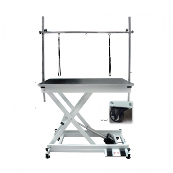 Ta električna miza je nekoliko manjša z nosilnostjo do 100kg. Zaradi svoje velikosti je idealna za manjše prostore hkrati pa kolesa omogočajo lažje premikanje po prostoru. Njena oblika omogoča dobro prilagajanje višine (najnižja točka 29cm, najvišja pa kar 101 cm), kar pomaga pri dvigovanju psa na mizo.