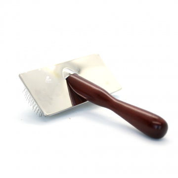 Ova četvrtasta drvena četka idealna je za raščešljavanje guste dlake. Ima zakrivljenu glavu koja povećava površinu češljanja i odgovara našim potezima četkanja. L veličina glave i ekstra duge igle, koje su umetnute u meki jastučić te osiguravaju da ova četka ne bude pregruba i samim time ne kida dlaku.