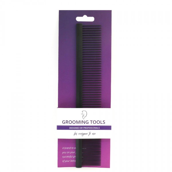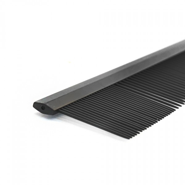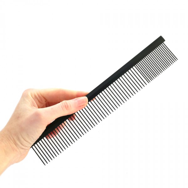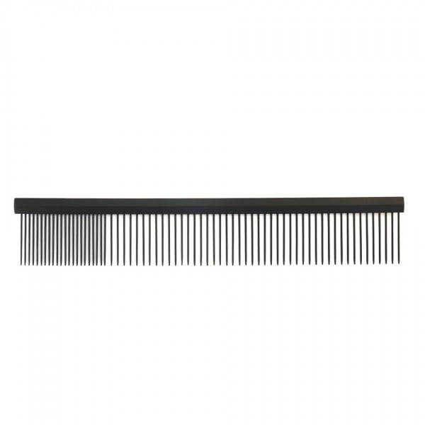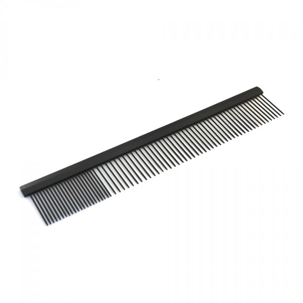 Ta dolg kovinski glavnik je idealen za različne podvige. Zaradi svoje dolžine je idelen pomočnik pri srednje velikih in velikih psih z dolgo dlako. 20% dolžine glavnika ima gostejše umeščene zobce kot preostali del, kar omogoča fino prečesavanje manjših predelov dlake. Črn teflonski premaz bo poskrbel, da dlaka ne bo statična!