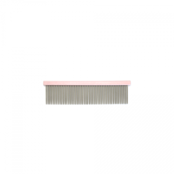 Srednji kovinski glavnik z dvema različnima gostotama zobcev, ki je bolj gosta od standardnih glavnikov, je odličen pomočnik pri česanju dlake med striženjem. Zaradi svoje elegantne oblike je izredno lahek a hkrati vzdržljiv.