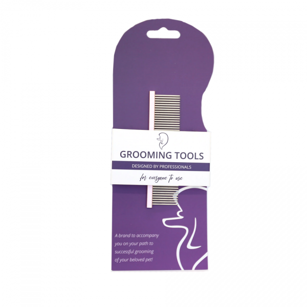 Majhen kovinski glavnik z dvema različnima gostotama zobcev je klasičen pomočnik pri prečesavanju dlake in iskanju tujkov v njej. Zaradi svoje elegantne oblike je izredno lahek a hkrati vzdržljiv.