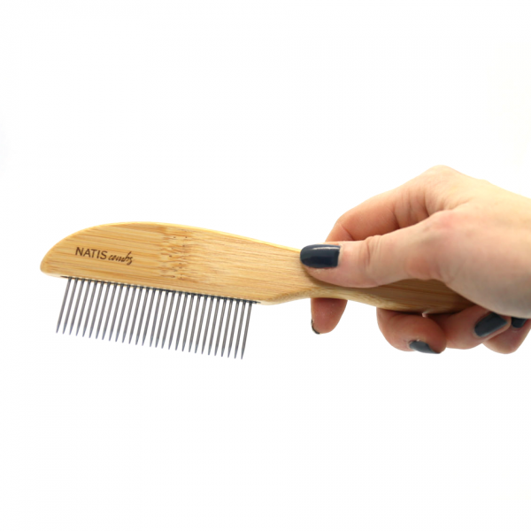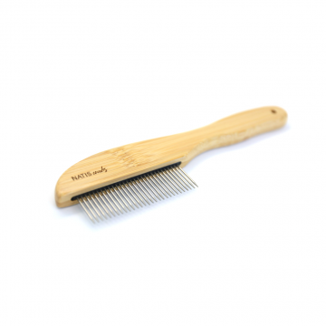 Dolg kovinski glavnik z dvema različnima gostotama zobcev je klasičen pomočnik pri prečesavanju dlake in iskanju tujkov v njej. Zaradi teflonskega premaza ta glavnik ne bo pozročal statike v dlaki.